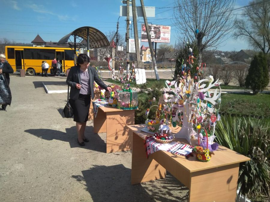 Експозиція складалася з писанкових дерев, вишиваних рушників та великодніх композицій. Різні за технікою виконання писанки, виготовлені учнями та педагогами району, дерев’яні, паперові, глиняні, прикрашені бісером, крупами, візерунками. Сотні писанок та крашанок прикрасили майданчик біля управління освіти. Виконані власноруч, свої великодні дерева сюди привезли 12 закладів освіти.